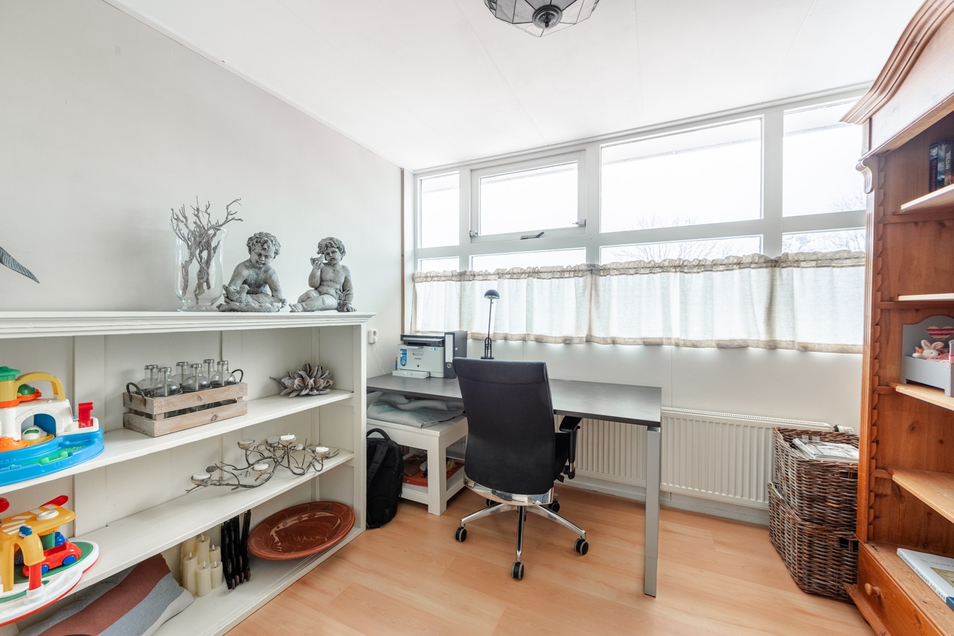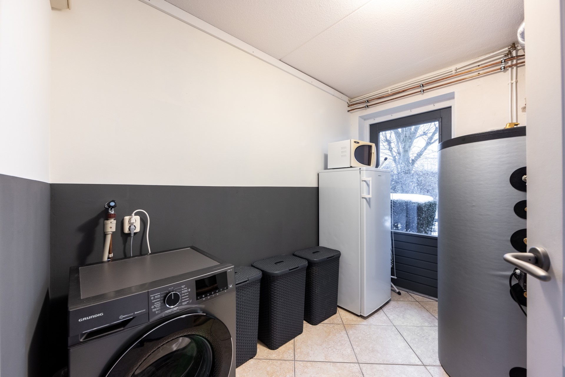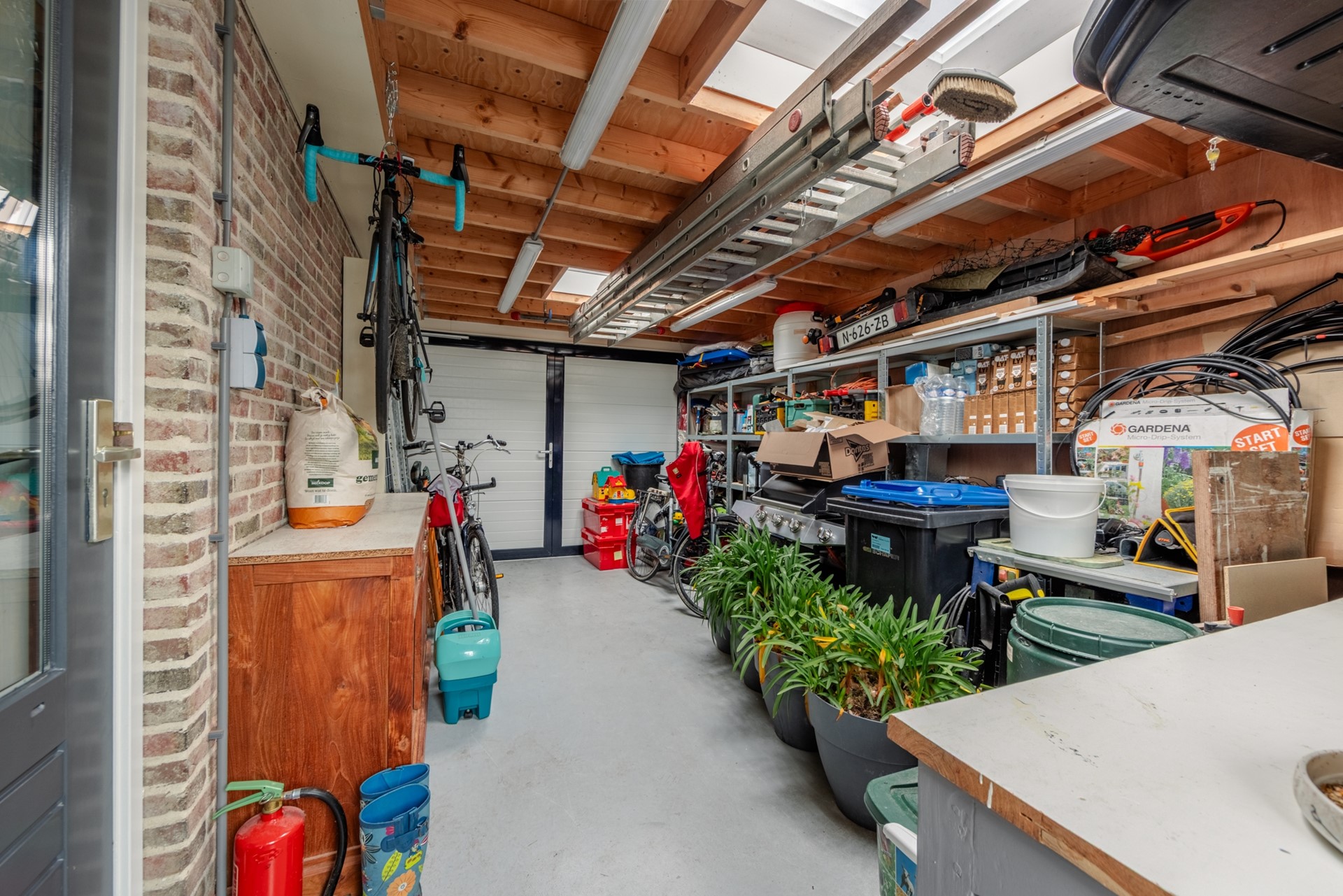 Via tuin met oprit naar de garage kom je bij de entree van de woning. De zeer ruime hal met garderobe en toilet biedt toegang tot de bijkeuken, de inpandige berging en de nieuw aangebouwde, geïsoleerde en verwarmde garage. De Z-vormige woonkamer heeft twee openslaande deuren naar de tuin. De gezellige halfopen woonkeuken met inbouwapparatuur heeft een landelijke stijl en eveneens openslaande deuren naar de tuin. In het zitgedeelte zorgt een prachtige Jotul-houtkachel voor sfeer. En de extra woon-/werkkamer biedt een prachtig uitzicht. De gehele begane grond is voorzien van vloerverwarming.