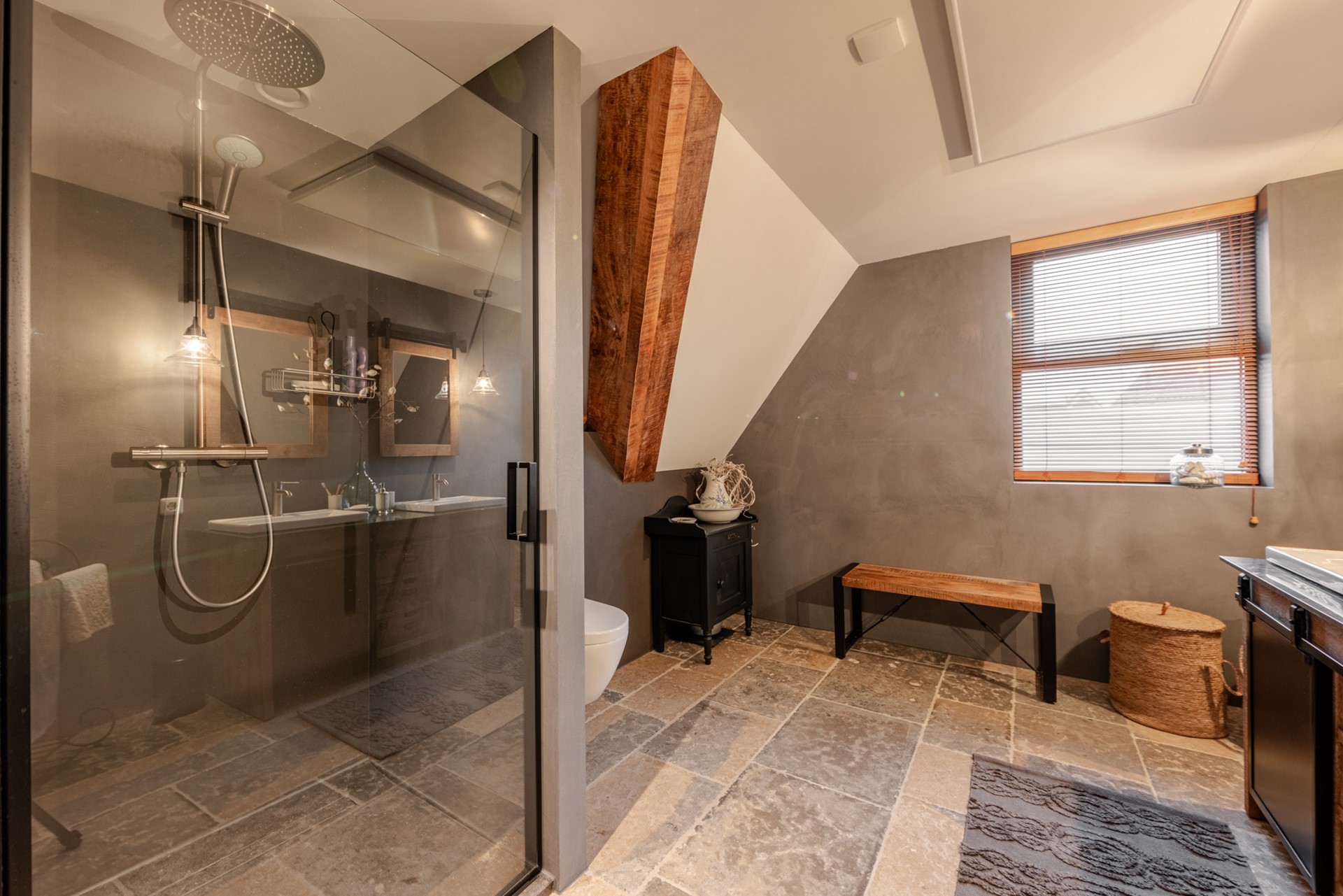 Op de verdieping zijn maar liefst vijf slaapkamers. De vernieuwde badkamer beschikt over een inloopdouche, een dubbel wastafelmeubel, een natuurstenen vloer met vloerverwarming en een infraroodpaneel.