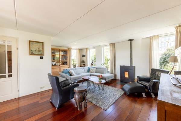 Het mooie aan deze vrijstaande woning is het adembenemende uitzicht. Hoe langer je kijkt, hoe meer je ziet! De tuin ligt heerlijk besloten op het westen, dus tot ’s avonds is er zon die je zo ziet ondergaan. De tuin is onderhoudsarm, waardoor er extra veel tijd is om van een drankje te genieten. Of je vaart zo vanaf de ruim 18 meter brede aanlegkade de Friese wateren op. Met een sloep of geklapte mast kom je onder de duikers door en vaar je naar prachtige open wateren. Via de ruime voortuin en oprit naar de garage kom je bij de entree van de woning. Het bouwjaar is 2001, dus de woning is volledig geïsoleerd. Ook is de woning heel goed onderhouden. Via de ruime hal met toilet en een deur naar de bijkeuken kom je in de L-vormige woonkamer met een massief houten Jatoba vloer en een palletkachel. De woonkeuken heeft inbouwapparatuur en openslaande deuren naar de tuin. Ook vanuit hier heb je prachtige vergezichten. Dit is een plek waar je heerlijk kunt zitten. Op de eerste verdieping heb je een ruime overloop en zijn er vier slaapkamers, waarvan een met een walk-in-closet. De badkamer is vernieuwd en heeft een ligbad, douche, wastafelmeubel en wandcloset. Verder is er nog een ruime bergzolder waar je veel spullen kunt opbergen. Er zijn in de loop van de tijd veel vernieuwingen doorgevoerd, zoals de garagedeur, het toilet en de badkamer. Bovendien zijn er recent 24 zonnepanelen, een warmtepomp en een waterpompboiler geplaatst, dus in principe ben je van het gas af. De woning heeft in 2020 al een energielabel A gekregen, maar dit zou nu zomaar een A+++ kunnen zijn. Makkum is een gezellig, pittoresk watersportdorp aan het IJsselmeer. Alle voorzieningen zijn hier aanwezig. Je rijdt zo de wijk uit naar de A7, waardoor je binnen een uur bij Amsterdam, Groningen of Zwolle bent. Zie jij jezelf al wonen in deze prachtige, vrijstaande woning aan het water? Maak dan een afspraak. Tot dan! Exoneratiebeding De informatie is met grote zorgvuldigheid samengesteld. Desondanks aanvaardt de verkoper noch Hilbert Makelaardij enige aansprakelijkheid voor de onjuistheid van gegevens. De koper kan aan de inhoud van de vermelde informatie geen enkel recht ontlenen. Hij dient zelf onderzoek te plegen naar alle aspecten van de woning die voor hem van belang zijn.