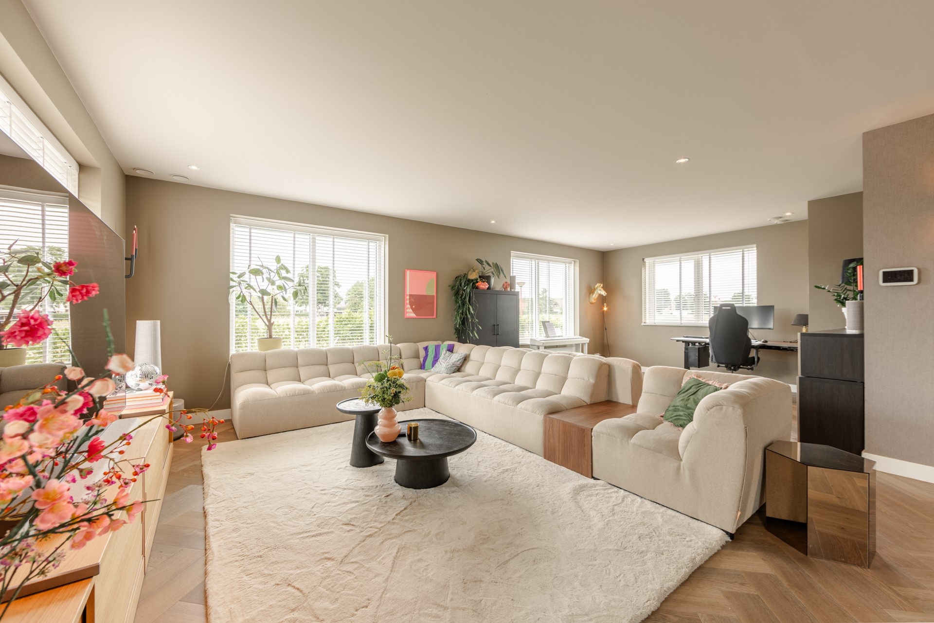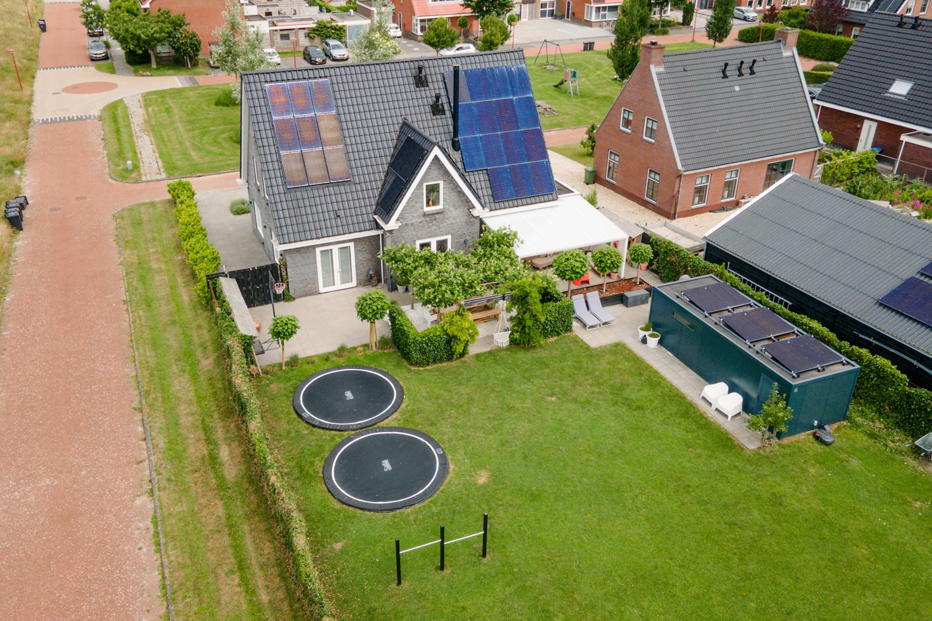 Alle kozijnen, boeidelen en wandbekledingen zijn van kunststof, dus onderhoudsarm. Dankzij de uitstekende isolatie en de 37 zonnepanelen beschikt de woning over energielabel A+.