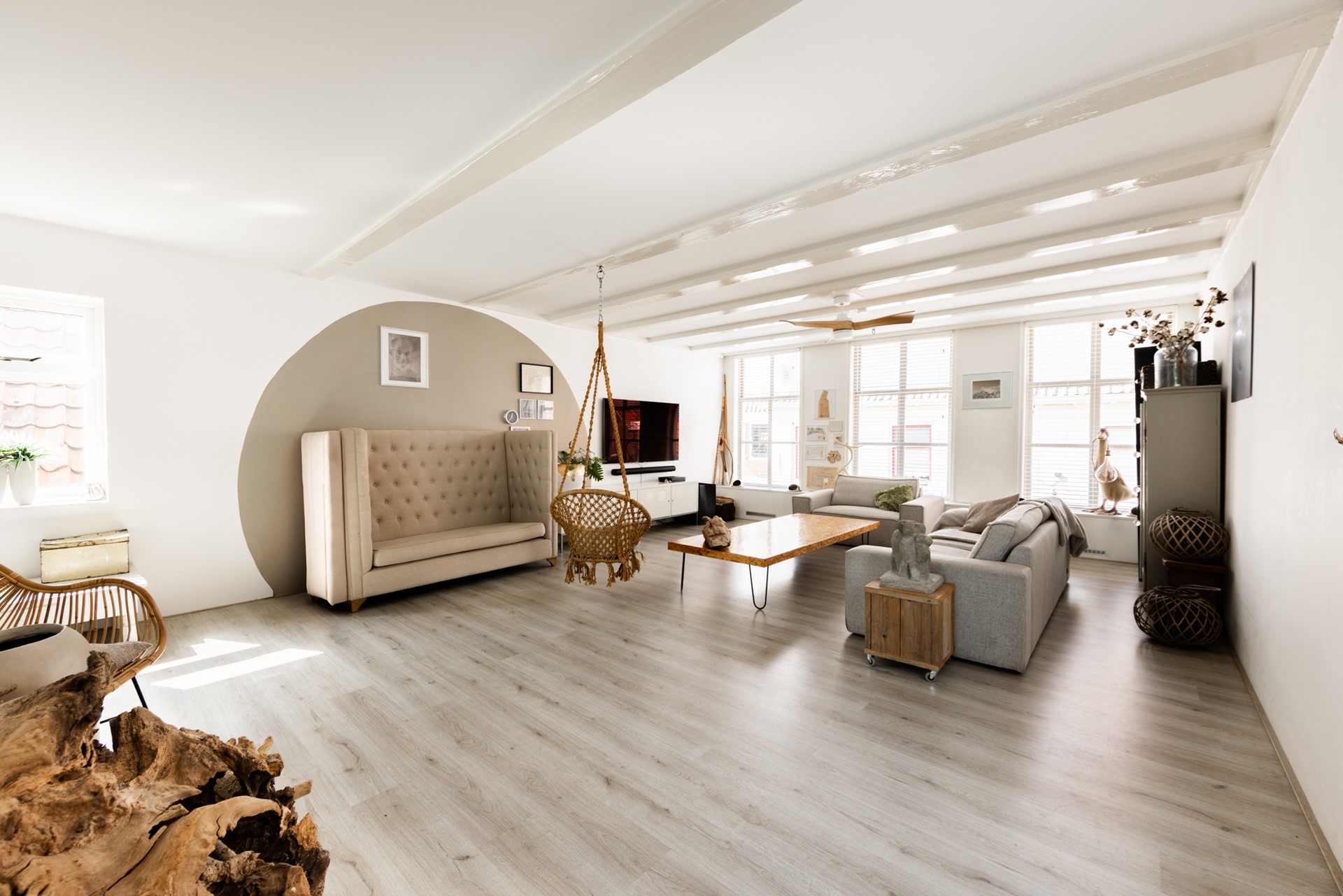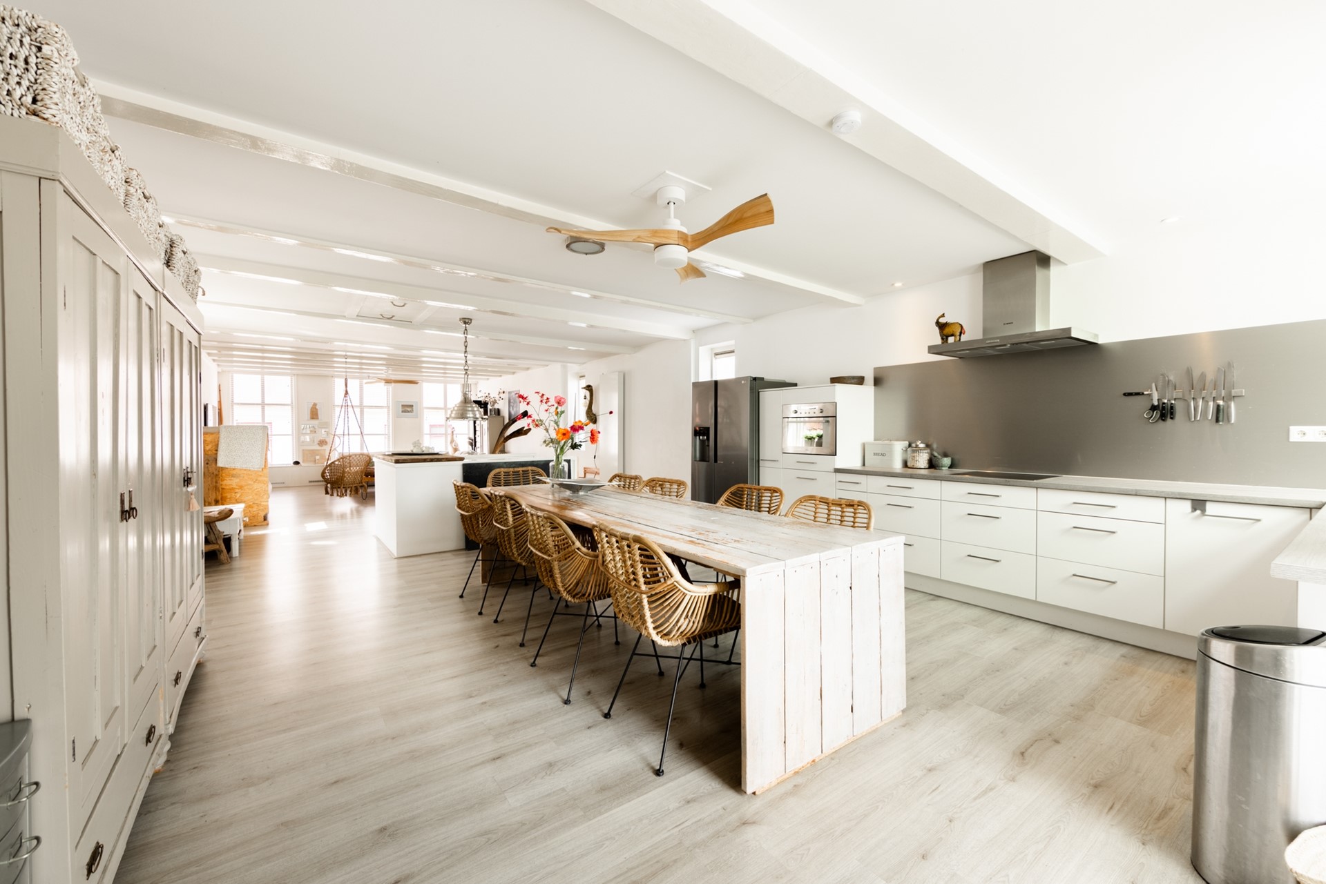 Het pittoreske Makkum staat onder andere bekend om het aardewerk, de oude haven en de sluizen naar het IJsselmeer. In het gezellige dorpscentrum bevindt zich een heel bijzondere woning, namelijk Kerkstraat 6. Wat je niet zou vermoeden, is de enorme ruimte achter de gevel. Eenmaal binnen ervaar je rust en leef je in je eigen wereld.