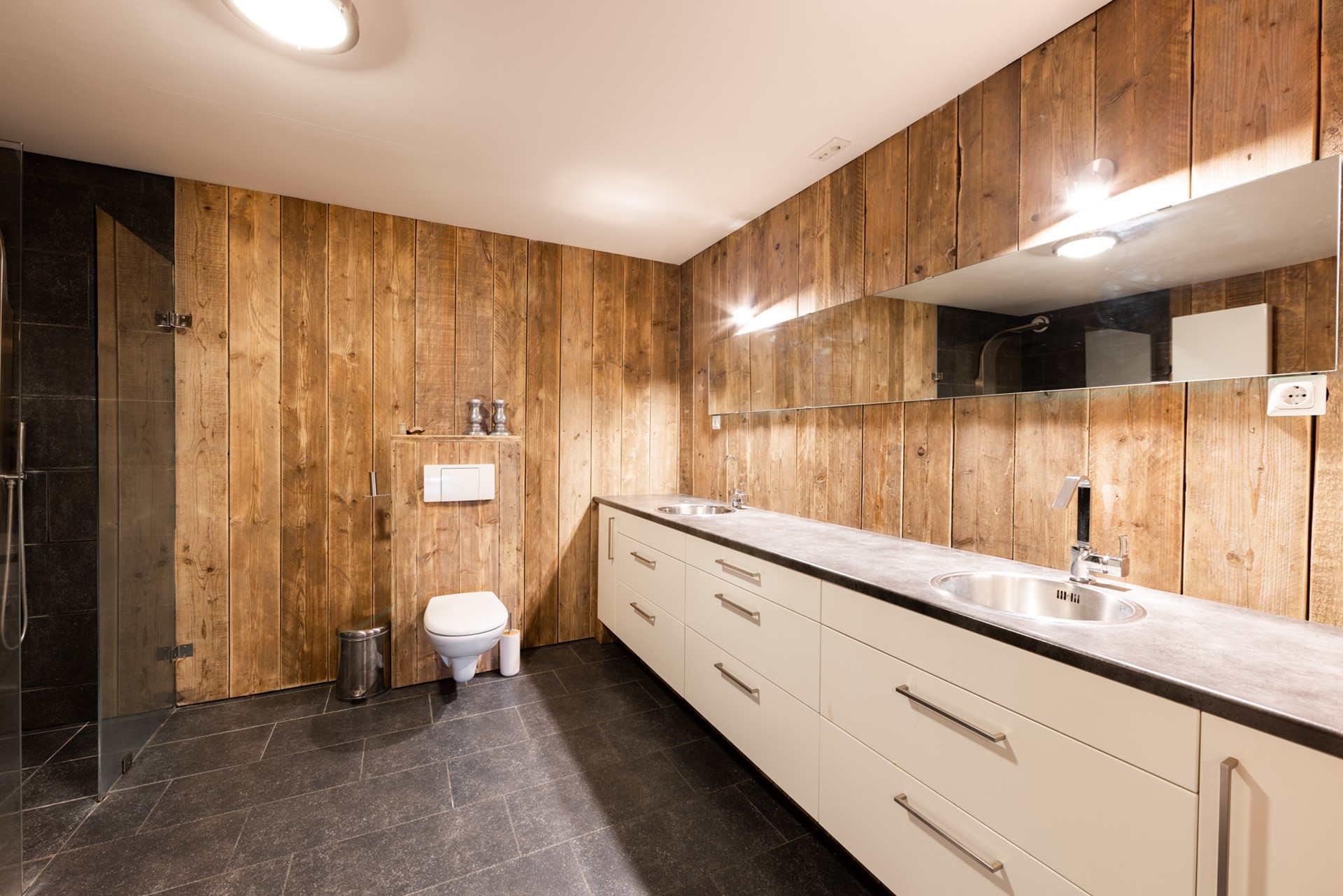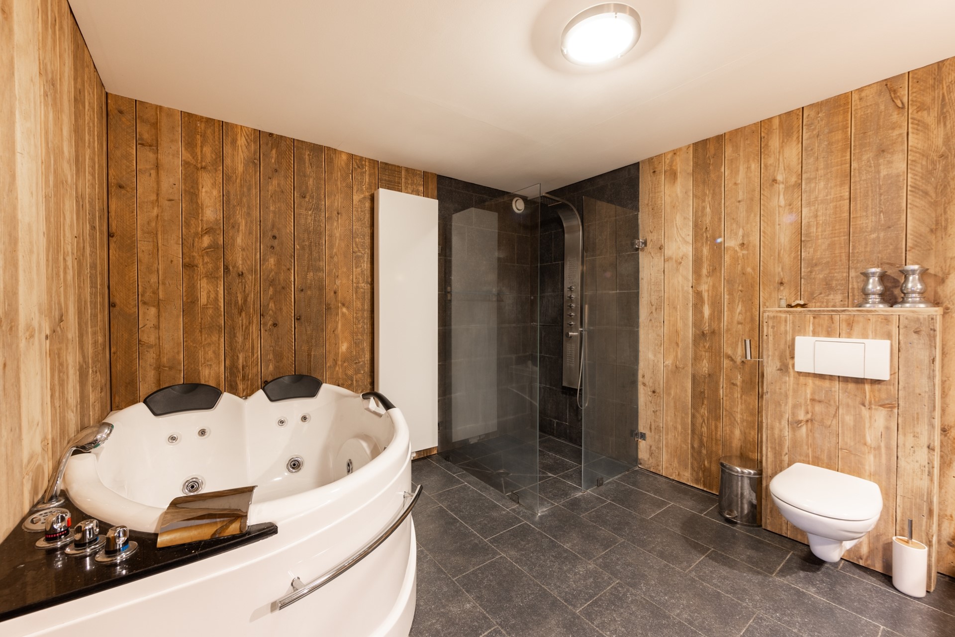 | Badkamervoorzieningen | Dubbele wastafel, Inloopdouche, Jacuzzi, Toilet, Wastafelmeubel |