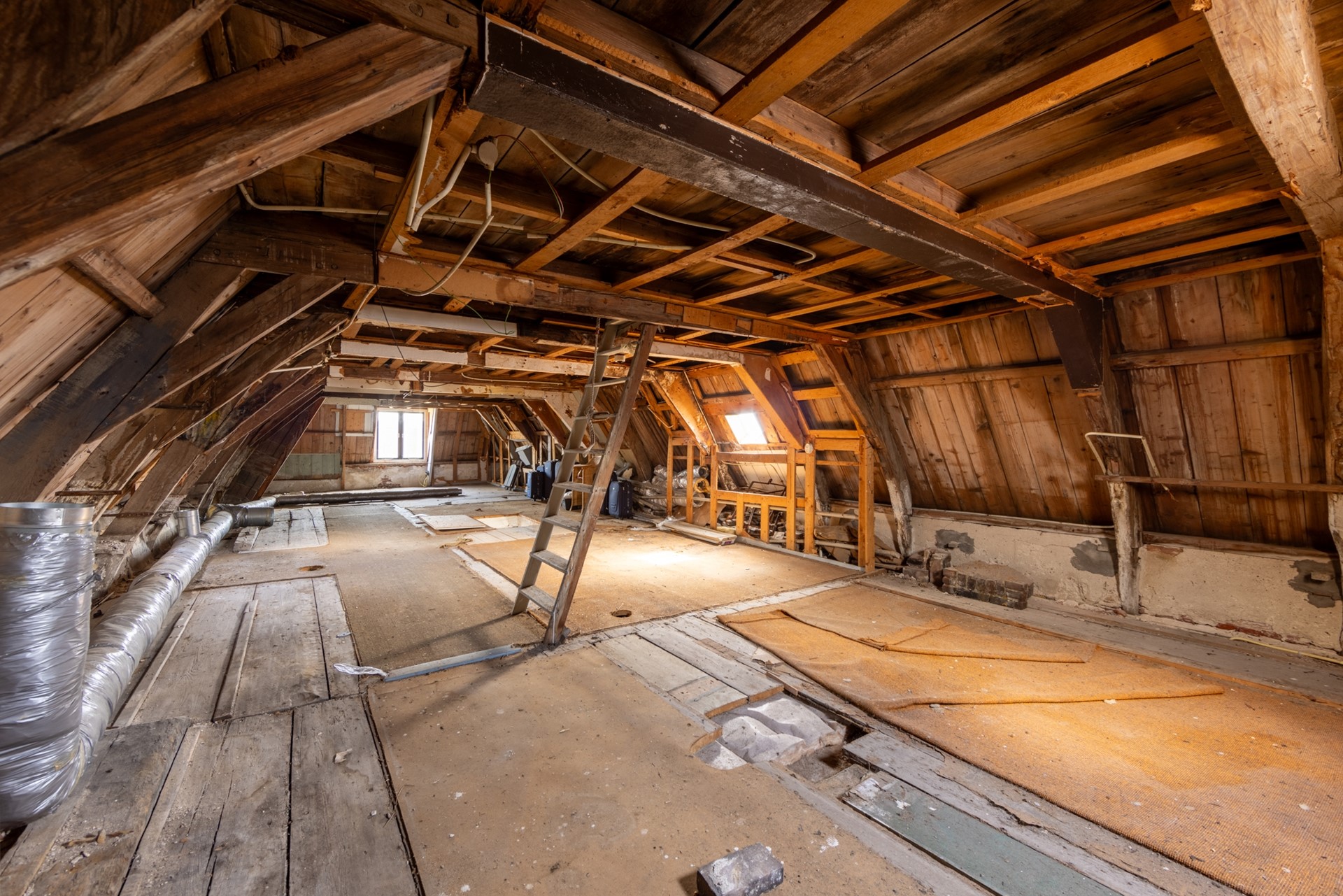 Verder is er nog een zeer ruime zolder van 1,90 meter hoog. Deze wordt momenteel niet gebruikt, omdat er al zoveel ruimte is.