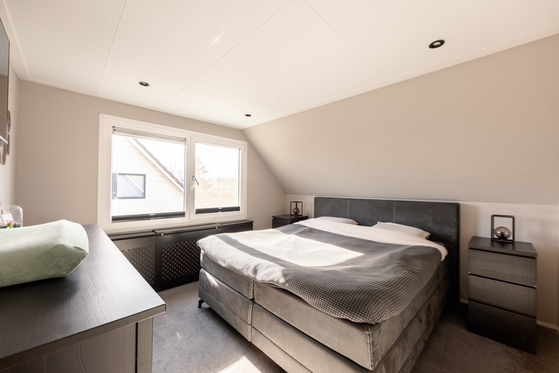 Op de verdieping heb je een overloop met vide. Er zijn in totaal drie slaapkamers, waarvan één met een inloopkast. De badkamer is van 2021 en heeft een ligbad, inloopdouche, dubbele wastafelmeubel en een wandcloset. Op de overloop is er ook nog een bergkast met een nieuwe cv-installatie en een doorgang naar de bergzolder, waar je je spullen kwijt kunt.