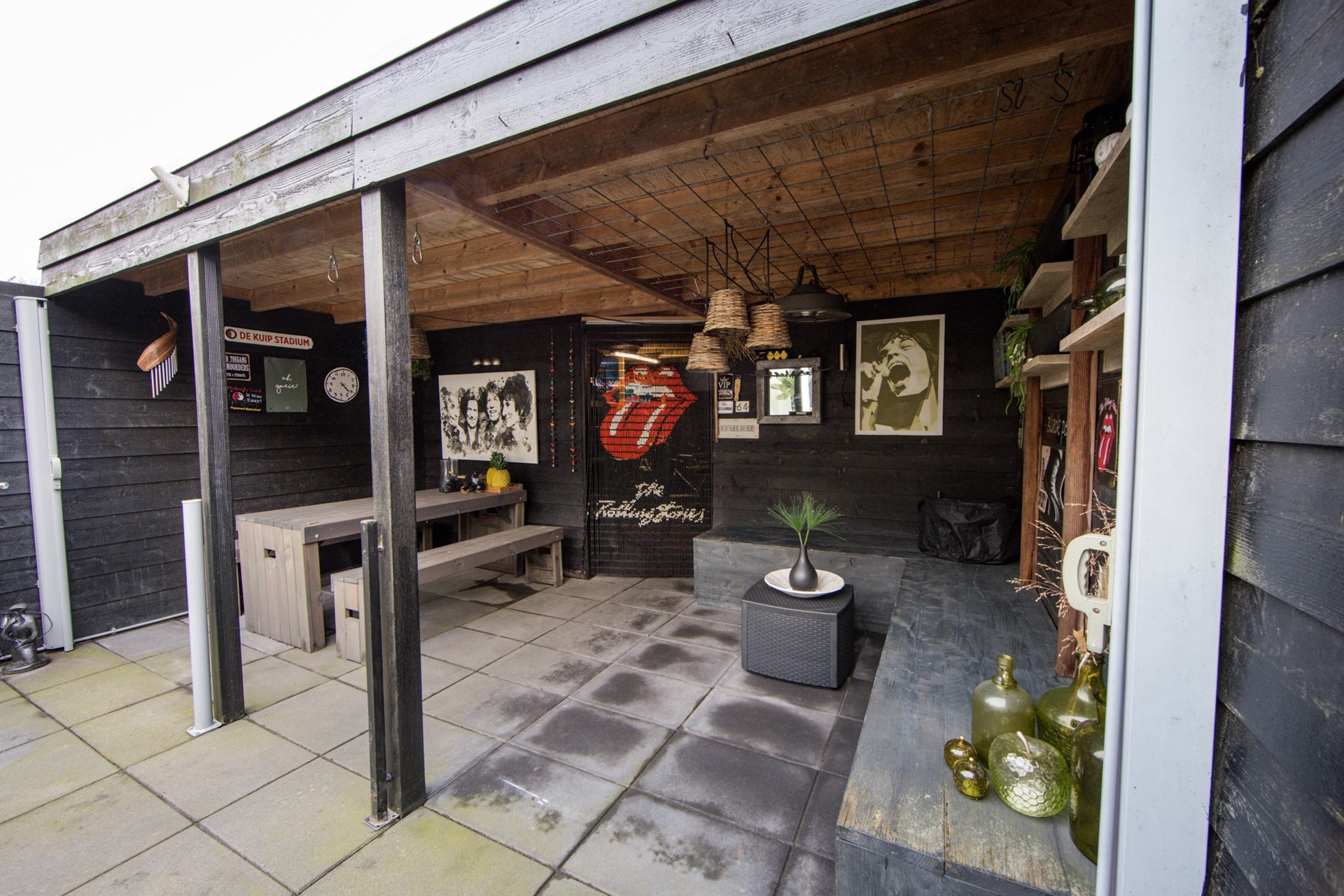 De achtertuin ligt lekker zonnig op het zuiden en is 10 meter diep. Met een achterom en een vrijstaande houten schuur met overkapping en 12 zonnepanelen.
